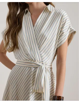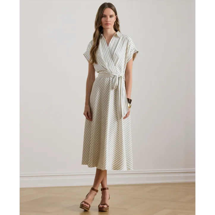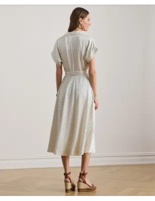 RALPH LAUREN- ABITO IN TWILL A RIGHE CON CINTURA