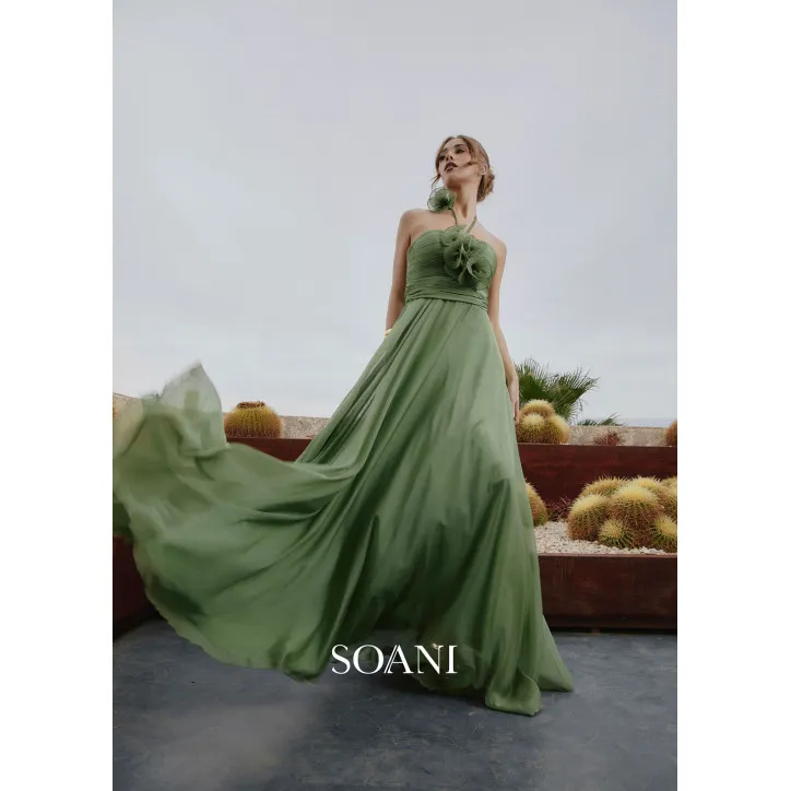 Bonini Privée - Abito lungo in crêpe arricciato senza spalline