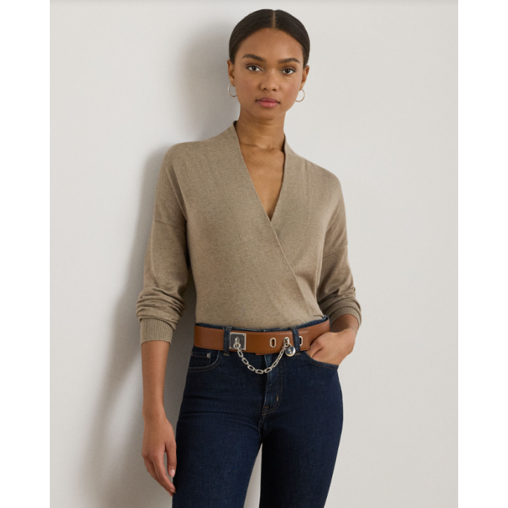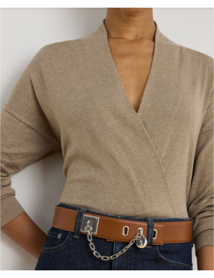 RALPH LAUREN- Maglia in cotone a trecce con bottoni