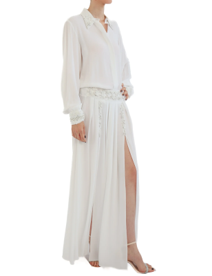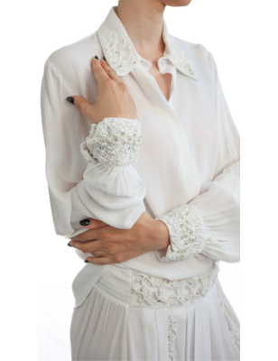 GENNY- Top in misto seta con maniche a rete strass