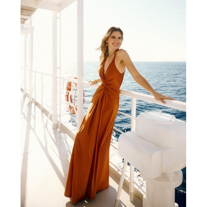 Bonini Privée - Abito lungo con spalle scoperte e scollatura con preziosi