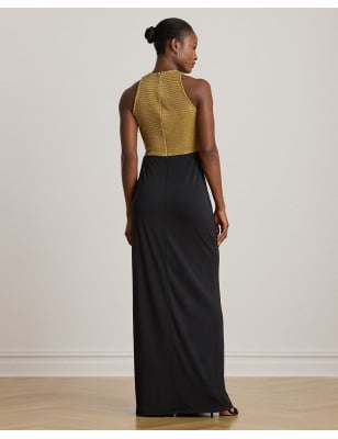 RALPH LAUREN- Abito lungo in rete e jersey con fiocco