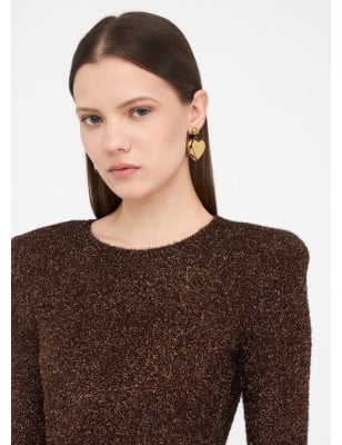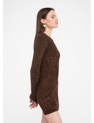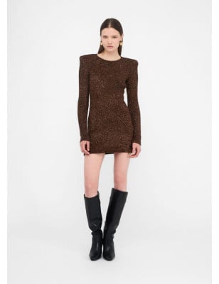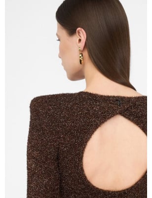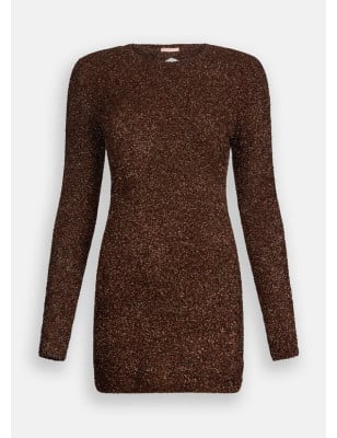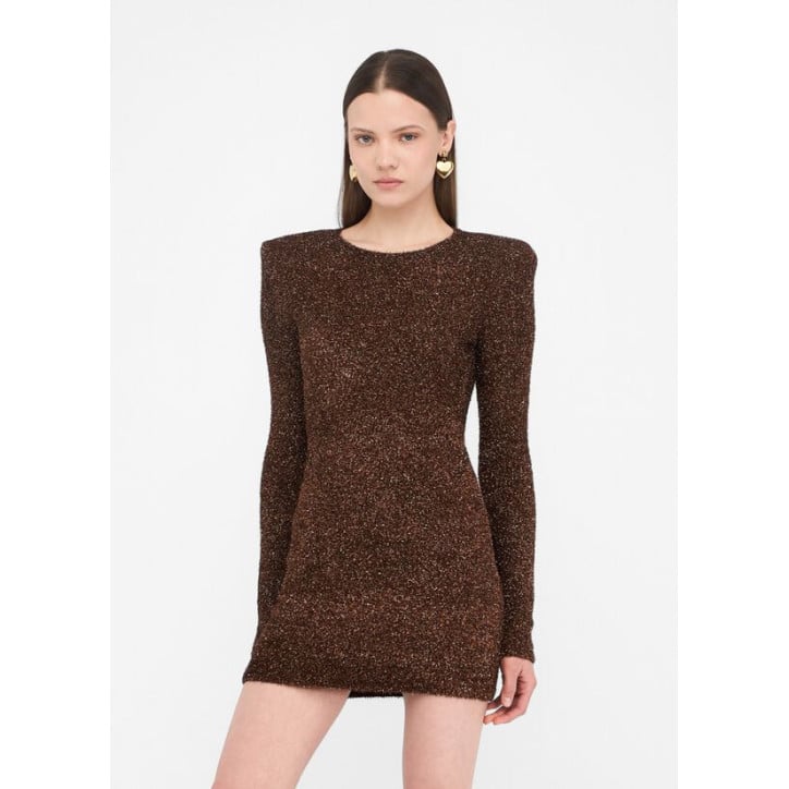 Abito corto in maglia. Effetto sparkling. Spalline imbottite. Maniche lunghe. Cut-out sul dietro. Composizione: Tessuto principale: 100% Poliestere LAVAGGIO: Lavare a mano | Non trattare con cloro | Non Lavare a secco | Lavare a rovescio | Non strofinare durante il lavaggio ASCIUGATURA: Non usare Asciugatrice | Asciugare in piano STIRAGGIO: Non stirare | Stirare a temperatura massima 110 °C | Non stirare le decorazioni | Stirare interponendo un panno.