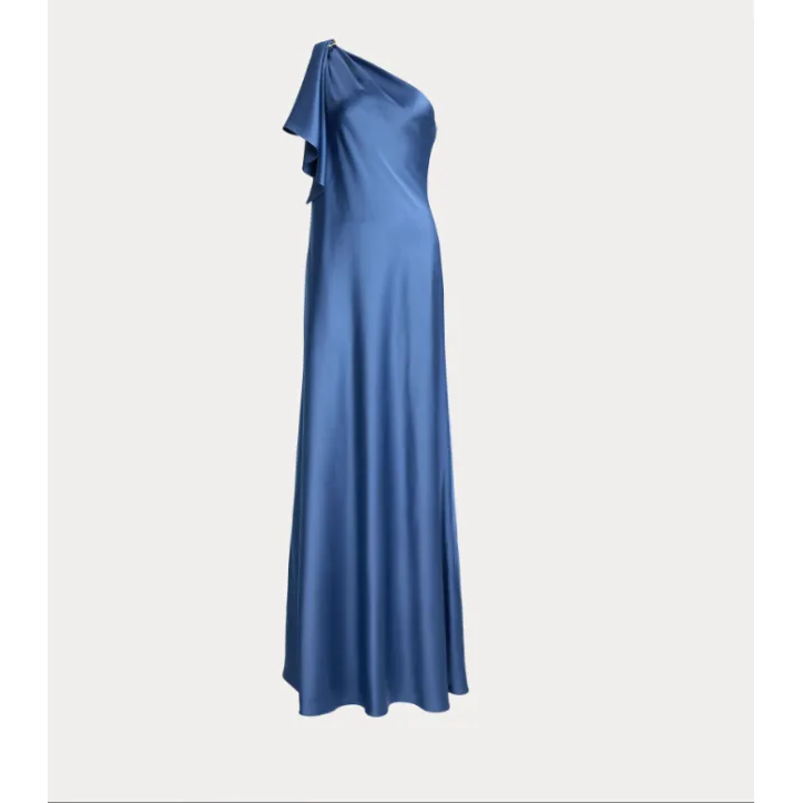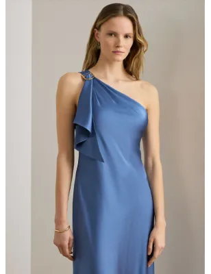 Il raso charmeuse martellato conferisce una splendida lucentezza e un drappeggio fluido a questo abito monospalla, caratterizzato da una delicata balza drappeggiata che scende a cascata da una fibbia sulla spalla.Abito monospalla in raso charmeuse. Silhouette a trapezio. Lunghezza fino al pavimento. La taglia US 8 ha una lunghezza del corpo di 140 cm. La lunghezza del vestito è misurata dal centro della parte posteriore del collo e varia di 1,25 cm tra le taglie. Silhouette monospalla. Modello da indossare senza chiusure. Volant sulla spalla destra che scende da una fibbia in metallo. Arricciature sulla spalla destra. Fodera interna in georgette. Lavare a mano in acqua fredda, lavare con colori simili, utilizzare solo candeggina senza cloro se necessario, appendere ad asciugare, stirare a bassa temperatura se necessario, non stirare le decorazioni, lavare a secco, lavare a secco in un sacchetto a rete. ESTERNO: 82% POLIESTERE (RICICLATO) 18% POLIESTERE, FODERA: 100% POLIESTERE (RICICLATO)