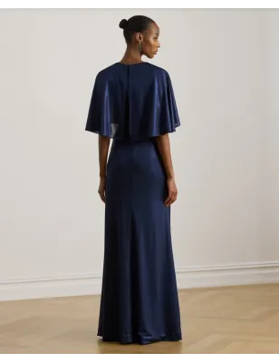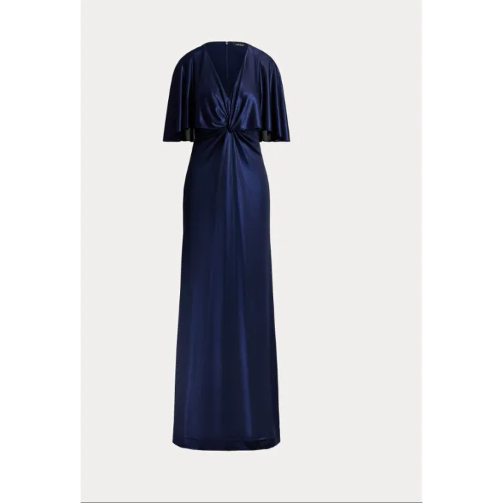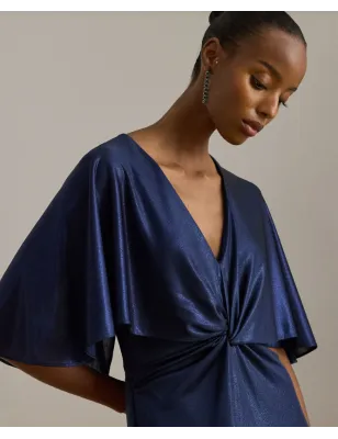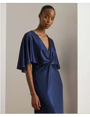 RALPH LAUREN- Abito a mantella con torsione sul davanti in jersey metallizzato