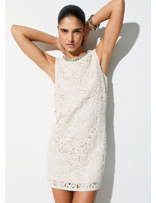 Luminoso, sofisticato, il macramè disegna un intreccio fittissimo, ricco di dettagli eppure leggero allo sguardo. Sul colletto ricami gioiello, che lo rendono un sì, senza esitazioni. Abito corto in macramè Filati in puro cotone Fodera Chiusura a goccia posteriore Girocollo Ricami gioiello.Composizione: Tessuto principale: 100% Cotone| Tessuto secondario: 95% Poliestere, 5% Elastan LAVAGGIO: Lavare a mano | Non trattare con cloro | Non Lavare a secco | Non strofinare durante il lavaggio | ASCIUGATURA: Non usare Asciugatrice | Asciugare appeso in ombra | Asciugare appeso | Rimettere in forma dopo il lavaggio | STIRAGGIO: Stirare a temperatura massima 110 °C | Stirare interponendo un panno.