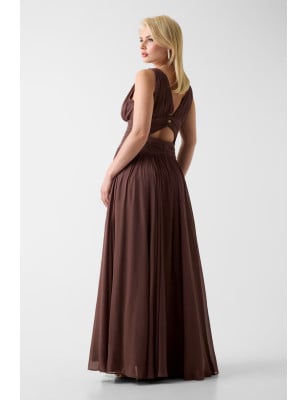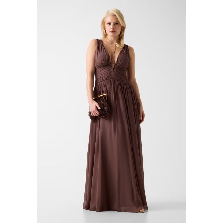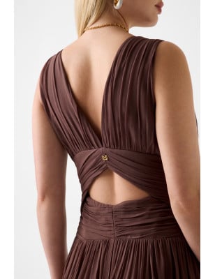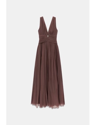 Vestito lungo in viscosa. Senza maniche. Scollatura a V profonda. Orlo a balze con uno spacco laterale. Fit & flare. Taglio sulla schiena. SHELL (tessuto principale): 100% Viscosa / Rayon; FODERA: 100% Poliestere ETICHETTA DI LAVAGGIO: Non lavare.
