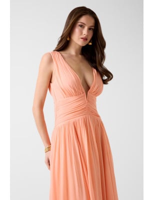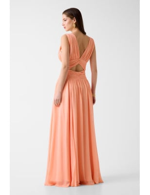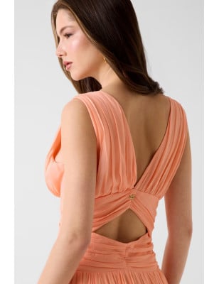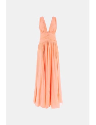 Vestito lungo in viscosa. Senza maniche. Scollatura a V profonda. Orlo a balze con uno spacco laterale. Fit & flare. Taglio sulla schiena. SHELL (tessuto principale): 100% Viscosa / Rayon; FODERA: 100% Poliestere ETICHETTA DI LAVAGGIO: Non lavare.