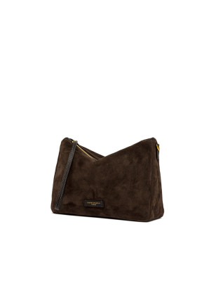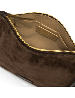 La borsa Nora Pouch by Gianni Chiarini Firenze è realizzata in morbida pelle scamosciata. È dotata di un cinturino in pelle che permette di portarla al polso e di una tracolla regolabile, entrambi removibili. Presenta una chiusura con zip per una maggiore praticità. Dimensioni: 28x21x9 cm.
