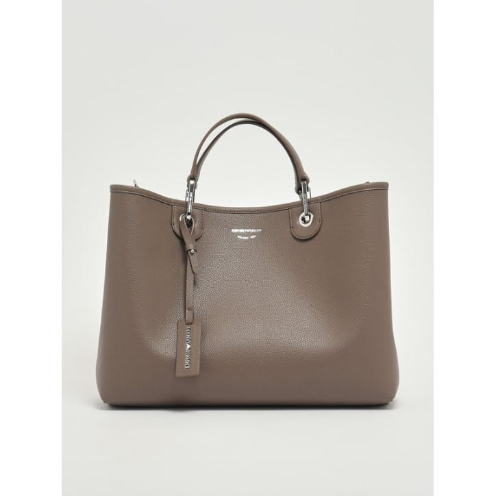 Shopper modello medio con rifinitura stampa cervo, chiusura a magnete e logo serigrafato. Item impreziosito da moschettoni logati e tag coordinato alla borsa, removibile e con logo lettering a rilievo. Provvista di pouch interna coordinata con zip e tracolla logata removibile. Questo articolo appartiene alla linea MyEA, la proposta Emporio Armani di borse iconiche ed esclusive più rappresentative della Maison. Materiale esterno: 100% poliuretano termoplastico; tessuto intermedio: 100% poliestere. materiale interno: 100% pvc. Dimensioni: 37,5 x 27 x 11,5 cm. Rifinitura stampa cervo. Tinta unita. Logo serigrafato. Doppio manico. Moschettoni logati. Tracolla removibile logata. Pouch interna coordinata con zip.