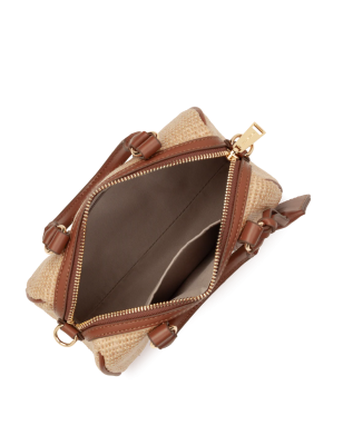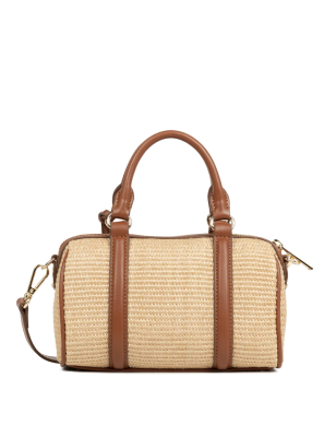 Questa borsa a cilindro è realizzata in polipropilene con finiture in pelle bovina. È dotata di una tasca interna con zip e di una tasca interna semplice. Si porta a mano, a spalla o a tracolla. Dimensioni 20 x 12,5 x 10 cm Dimensioni della tracolla (min-max) : 86 cm - 124 cm.