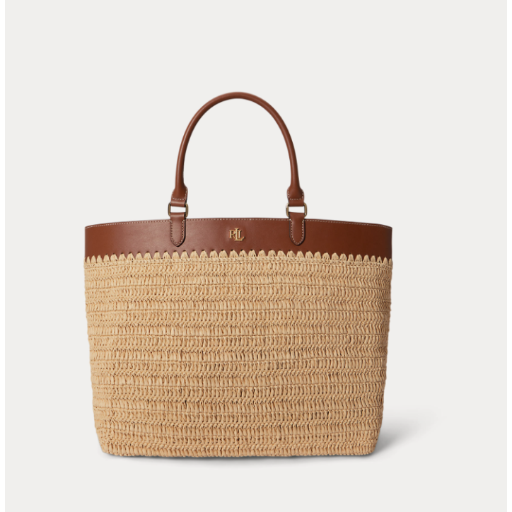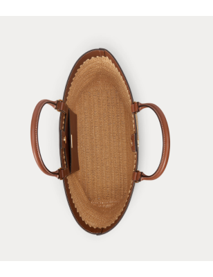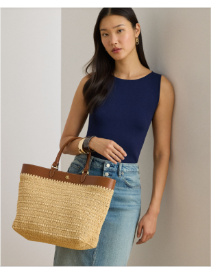 La grande borsa tote Kyla presenta una silhouette capiente in paglia di carta lavorata a mano all'uncinetto, rifinita con sontuosa pelle pieno fiore per un tocco artigianale. Il logo distintivo di Lauren sulla parte anteriore completa il look.Cannucce di carta al 100%.Due manici superiori in pelle, ciascuno con un'altezza di 6,25". Chiusura con bottone magnetico. Logo "LRL" con finitura in ottone sul davanti. Targhetta con finitura in ottone personalizzata con il logo "Lauren Ralph Lauren est. 1967" sulla tasca interna. Tasca interna a bustina in pelle. 11,75" H x 17,75" L x 5,75" P. Peso approssimativo: 1 lb, 4 oz. Esterno: paglia di carta. Finiture e tasca a bustina: pelle. Fodera della tasca: cotone. Pulire con un panno morbido e asciutto. Importato. Include sacchetto antipolvere.