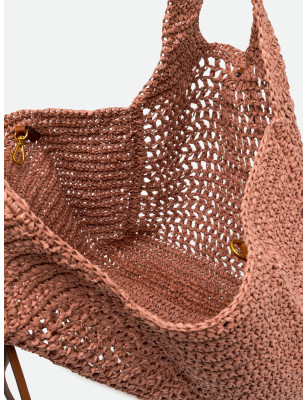 Nefeli è la nuova tote bag di Gianni Chiarini Firenze, realizzata in paglia crochet, perfetta per affrontare con leggerezza e stile le giornate estive. Presenta una chiusura con cordoncino e dettagli in metallo che donano un tocco luminoso al design. Dimensioni: 44x31x7 cm.