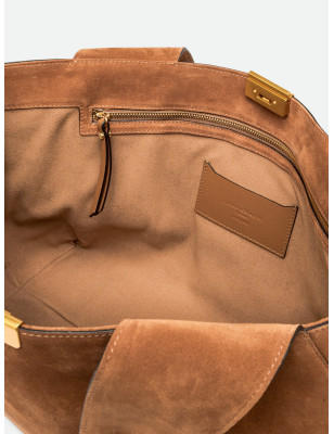 Vivi è la nuova shopping bag sfoderata firmata Gianni Chiarini Firenze, dal design essenziale e ricercato. Realizzata in morbido camoscio, è rifinita con impunture a contrasto che valorizzano la silhouette minimale e contemporanea. La chiusura è impreziosita da un dettaglio in metallo, che aggiunge un tocco distintivo al design.