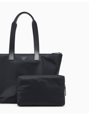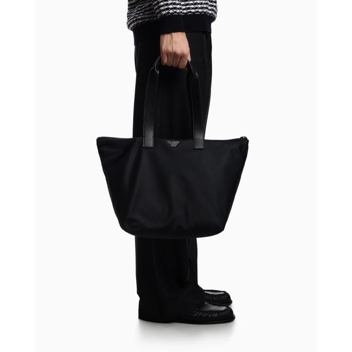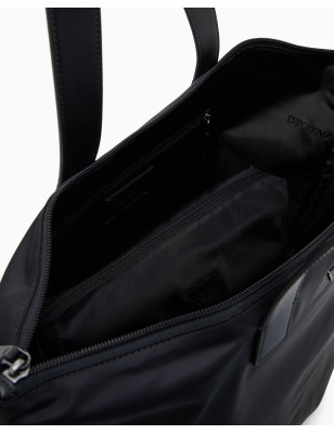 Questa borsa dal design minimalista incarna un’attitudine urbana e dinamica. La superficie liscia e opaca genera un contrasto materico con i manici in pelle, strutturati per accompagnare agilmente i movimenti quotidiani. Sul pannello frontale spicca un logo ad aquila metallica, dettaglio contemporaneo che definisce una silhouette essenziale, progettata per i ritmi della metropoli. L'organizzazione dello spazio interno foderato supporta attivamente ogni spostamento. Il capiente volume principale integra una pratica tasca con cerniera, che offre un rifugio sicuro per gli oggetti di valore. L'accessorio si completa con una versatile pochette coordinata, studiata per separare gli elementi più piccoli e mantenere un ordine rigoroso. Una sintesi di praticità quotidiana e resistenza strutturale. Tessuto: 100% poliammide. Fodera: 100% poliestere. Tessuto: 50% poliammide riciclata. Dimensioni: 30 x 29,5 x 19 cm. Nylon riciclato. Dettagli in pelle. Placchetta aquila. Doppio manico superiore. Pouch coordinata con zip.