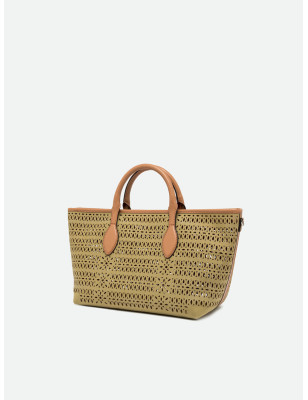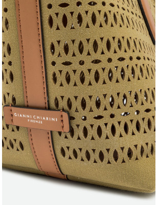 La borsa a mano Mashup di Gianni Chiarini Firenze è realizzata in canvas laserato, che dà vita a un sofisticato decoro traforato, rendendola unica e senza tempo. Dotata di due manici in pelle e chiusura con zip, è ideale per completare un look casual quotidiano. Include una tracolla regolabile e removibile, per un’opzione crossbody pratica e versatile. Dimensioni: 30x22x14 cm.