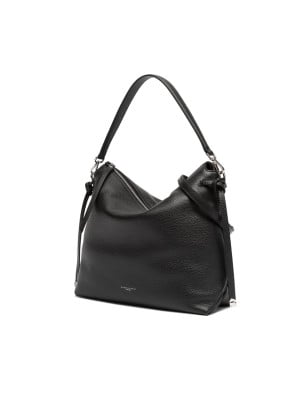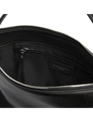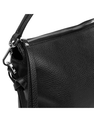 Brina by Gianni Chiarini Firenze è una borsa in pelle martellata con linee minimal e squadrate. I dettagli annodati e i componenti in metallo aggiungono un tocco luminoso. È dotata di un manico in pelle per essere indossata comodamente a spalla e di una tracolla regolabile e removibile, ideale per un'opzione crossbody. La chiusura superiore con zip garantisce sicurezza e praticità. Dimensioni: 32x28x11 cm.