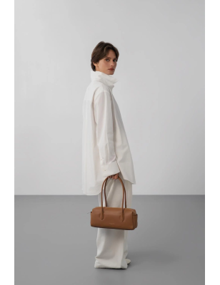 Questa borsa a spalla è realizzata in pelle bovina liscia. È dotata di due tasche laterali esterne, una tasca interna con zip e un portacarte interno. La chiusura è con zip. Si porta a spalla.Dimensioni 32 x 12 x 9 cm.