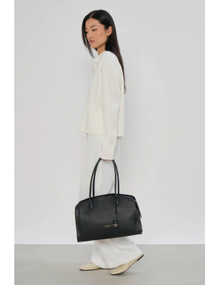 Questa shopper grande a spalla è realizzata in pelle bovina pieno fiore liscia. È dotata di una tasca esterna posteriore con zip, due scomparti con chiusura magnetica, una doppia tasca interna semplice e una tasca interna con zip. Si porta a spalla. Dimensioni 40 x 26 x 14 cm.