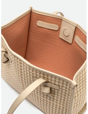 La shopping Marcella by Gianni Chiarini Firenze reinterpreta un classico con uno spirito audace e contemporaneo. Realizzata in tessuto pied de poule è arricchita da profili in pelle e manici tono su tono. Dotata di chiusura magnetica e pochette interna coordinata, è l’accessorio perfetto per completare i look quotidiani con personalità. Dimensioni: 33x25x13 cm.