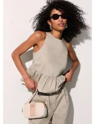 Misure: 18 x 6 x 11 cm Borsa a tracolla piccola Realizzata in canvas con inserto jacquard Due scomparti Chiusura con zip Tracolla regolabile Tasca sul dietro.Composizione: Tessuto principale: 100% Cotone| Fodera principale: 100% Poliestere| Spalmatura: 100% RESINA POLIURETANICA| Tessuto secondario: 100% Poliestere| terzo tessuto: 100% Poliestere LAVAGGIO: Non lavare in acqua | Non trattare con cloro | Non Lavare a secco | Lavare in centri specializzati | Pulire con panno umido e tamponare | ASCIUGATURA: Non usare Asciugatrice | STIRAGGIO: Non stirare.