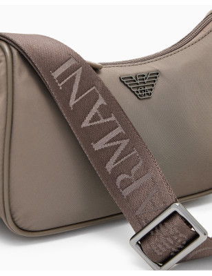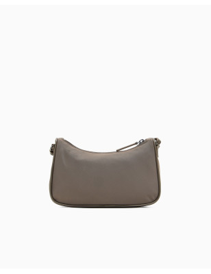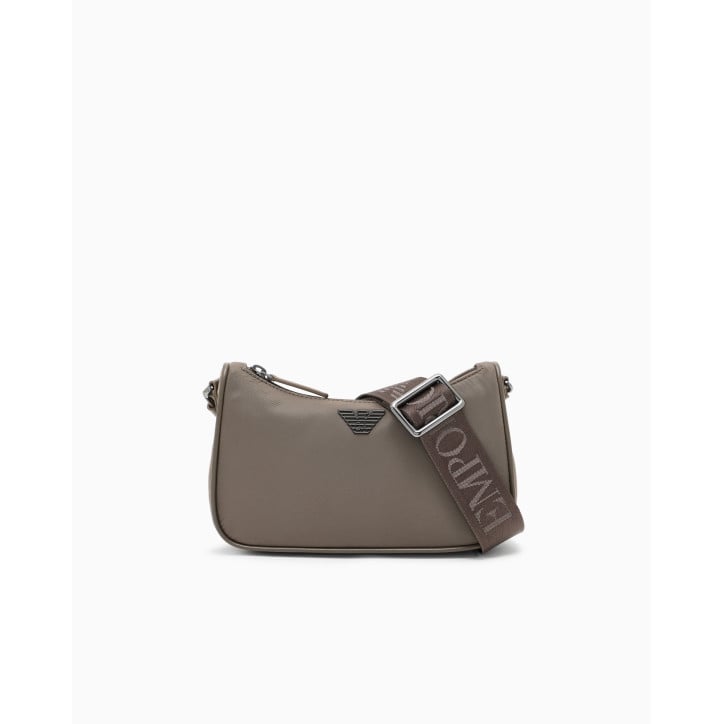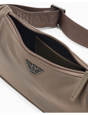 La linea essenziale di questa borsa definisce uno stile urbano, ideale per i ritmi veloci. La silhouette compatta e curva accompagna i movimenti con naturalezza e unisce estetica contemporanea e funzionalità. La struttura in nylon riciclato dalla finitura liscia si abbina a una tracolla regolabile in nastro con lettering, che offre una vestibilità personalizzata e un comfort prolungato. La costruzione si concentra su elementi progettati per la vita in città. Il logo ad aquila in metallo sagomato spicca sul frontale, affiancato da dettagli strutturali in pelle rigenerata. La chiusura superiore con zip protegge il contenuto e garantisce un accesso rapido, mentre l'interno foderato ospita una pratica tasca organizzativa per mantenere tutto in ordine con il minimo ingombro. Tessuto: 100% poliammide Materiale esterno: 100% poliuretano. Tessuto intermedio: 53% poliammide, 47% poliestere. Materiale interno: 100% rigenerato di fibre di cuoio. Imbottitura: 100% poliestere. Fodera: 100% poliestere. Tessuto: almeno 50% riciclato. Dimensioni: 23 x 6 x 14,5 cm. Nylon riciclato. Placchetta aquila. Chiusura con zip.. Tracolla regolabile.