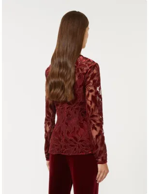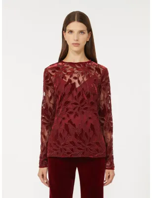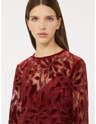 MAX MARA - T-shirt in tulle con ricami in velluto