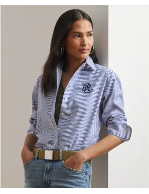 Un capo intramontabile del guardaroba, questa camicia elasticizzata è realizzata con la tecnologia PUREPRESS™ in cotone, una finitura stirata resistente che offre resistenza alle pieghe, riduce la perdita di robustezza del tessuto e protegge dall'abrasione. Caratterizzata da righe verticali tinte in filo, è rifinita con il logo "LRL" ricamato sul petto, per un tocco di stile inconfondibile firmato Lauren Ralph Lauren.Vestibilità comoda. Lunghezza fino ai fianchi. La taglia media ha una lunghezza del corpo di 76 cm e una lunghezza delle maniche di 82 cm. La lunghezza del corpo e delle maniche sono misurate dal centro della parte posteriore del collo. La lunghezza delle maniche varia di 1,9 cm tra le taglie. Colletto a punta. Abbottonatura frontale. Bottoni incisi con la scritta "Lauren Ralph Lauren". Maniche lunghe con polsini a barilotto abbottonati. Spalle scese. Logo "LRL" ricamato oversize sul petto a sinistra. Carré posteriore. Orlo a coda di camicia. 95% cotone, 5% elastan. Lavabile in lavatrice o a secco. Importato. Scegliendo i nostri prodotti in cotone, sostieni il nostro investimento nella missione Better Cotton™ per aiutare le comunità del cotone a sopravvivere e prosperare, proteggendo e ripristinando l'ambiente. Questo prodotto proviene da un sistema di bilancio di massa e pertanto potrebbe non contenere Better Cotton™. Lavare in lavatrice a freddo, lavare con colori simili, utilizzare solo candeggina senza cloro se necessario, asciugare in asciugatrice a bassa temperatura, stirare a temperatura media se necessario, lavare a secco.