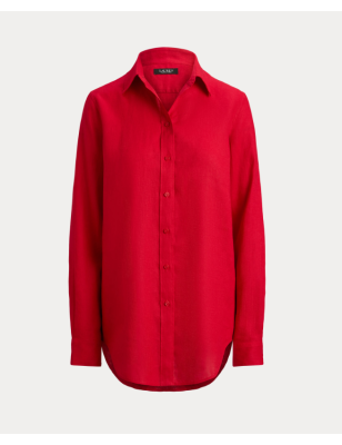 Il lino leggerissimo rende questa camicia, caratterizzata da maniche lunghe con linguetta per arrotolarle, un capo indispensabile per la stagione. Vestibilità comoda. Lunghezza fino ai fianchi. Colletto a punta. Abbottonatura frontale con bottoni incisi con la scritta "Lauren Ralph Lauren". Maniche lunghe arrotolabili con polsini abbottonati. Pieghe sui polsini. Orlo arrotondato. Lino. Lavaggio a secco. Lavare in lavatrice a freddo con ciclo delicato, lavare con colori simili, utilizzare solo candeggina senza cloro se necessario, asciugare in asciugatrice a bassa temperatura, stirare a temperatura media se necessario, lavare a secco.COMPOSIZIONE: 100% LINO.