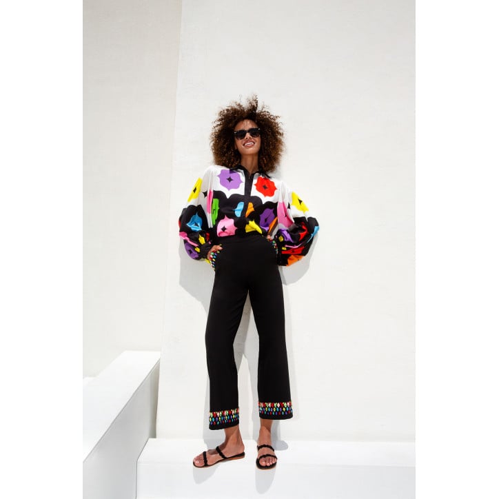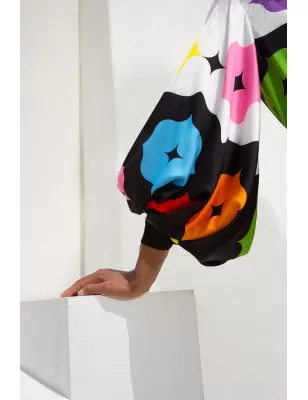 GENNY- Top in misto seta con maniche a rete strass