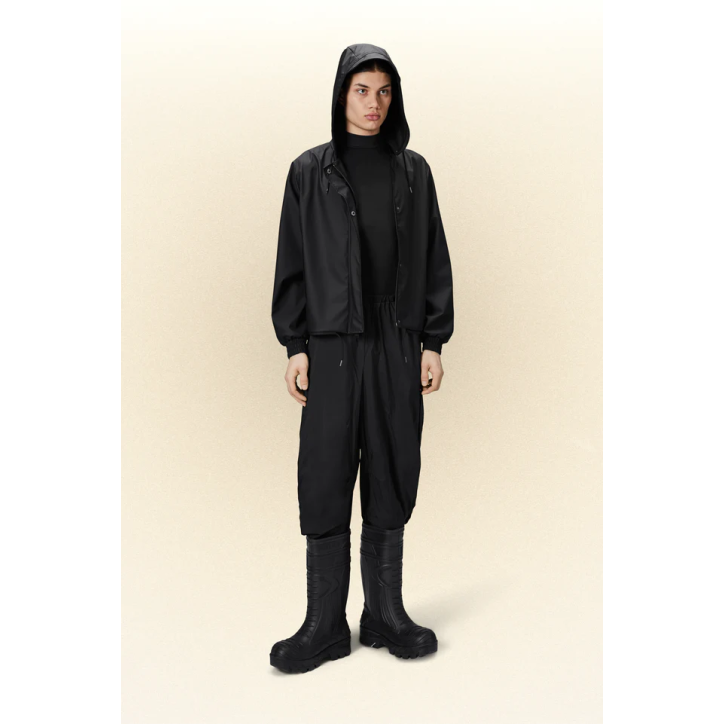 La String W Jacket è una giacca antipioggia dalla vestibilità ampia. Il modello è caratterizzato da polsini elasticizzati, tasche anteriori oblique e fori di ventilazione sotto le ascelle. La vestibilità può essere modificata grazie all'orlo con coulisse, mentre l'abbottonatura con bottoni automatici e il caratteristico cappuccio a tesa larga completano il look.