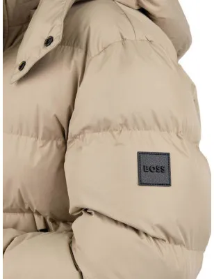 Un giubbotto imbottito BOSS con cappuccio rimovibile e fodera interna con monogrammi. Caratterizzato da una vestibilità regular fit, è realizzato in tessuto idrorepellente leggermente imbottito. Regular fit. Cappuccio rimovibile. Chiusura superiore: Chiusura con bottone e zip. Numero di bottoni: 4 o più bottoni. Taschini frontali: Tasche con patta. Tasche interne con zip. Polsini regolabili. Completamente foderato. Lunghezza standard. Lunghezza schiena regolare: 74 cm.