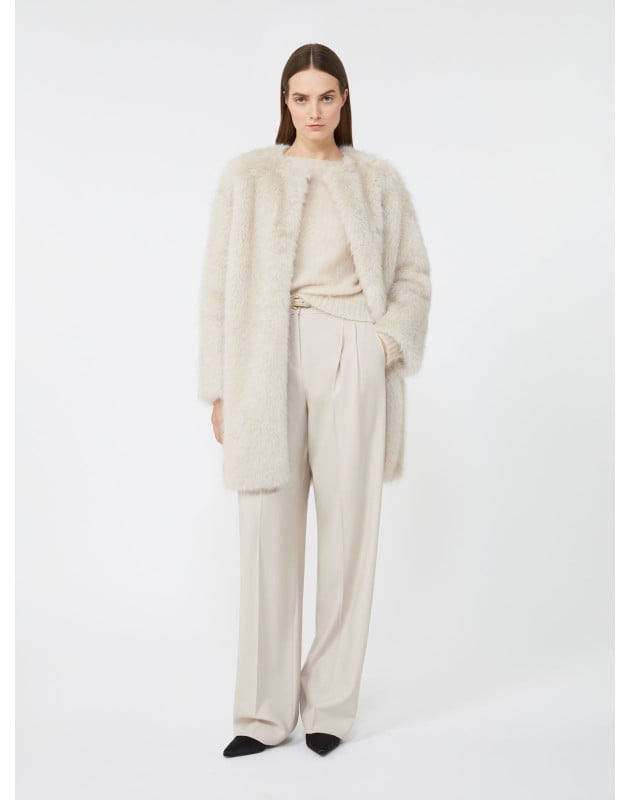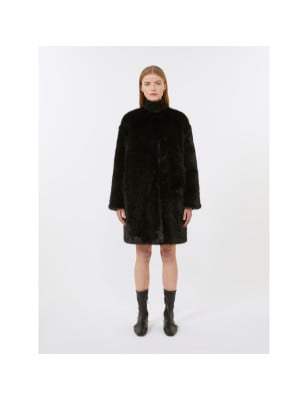 Cappotto midi soffice, che offre una vestibilità avvolgente e confortevole. Chiusura frontale e dettagli di pelletteria. Cappotto in tessuto dall’effetto faux fur Vestibilità oversize Girocollo Maniche lunghe con spalla scesa Chiusura frontale con gancetti da pelletteria Tasche inserite nei fianchi Foderato. CAPPOTTO Tessuto a maglia: 100% Poliestere Fodera: 55% Poliestere, 45% Viscosa