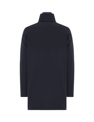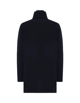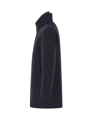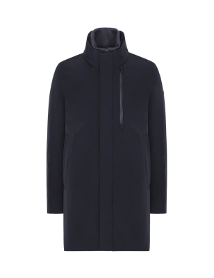 Cappotto in tessuto 2-Layer bi-stretch con imbottitura in piuma, caratterizzato da un collo in piedi nel quale è ripiegato un cappuccio e da una pettorina staccabile con chiusura a zip e collo in maglia di lana. Doppia chiusura frontale con zip water-resistant doppio cursore e automatici nascosti. Tasche laterali a filetto chiuse da zip e ampia tasca al petto. All'interno tasche multifunzione con dettagli catarifrangenti. CARATTERISTICHE DEL TESSUTO Tessuto tecnico 2-Layer in nylon bi-stretch wrinkle-free con microstruttura diagonale e membrana posteriore elastica waterproof con WP 5.000 mm e con traspirabilità pari a MVP 5.000 g/ sqm/24hrs. La morbidezza del tessuto bi-stretch conferisce comfort nel movimento, mentre I' imbottitura in piuma e la protezione offerta dalla membrana del tessuto agevolano la termoregolazione del corpo, preservando il microclima interno al capo. Composizione: 83% Poliammide 17% Elastan Imbottitura: 90% Piumino 10% Piuma VESTIBILITÀ Regular