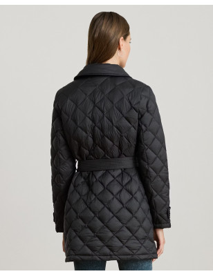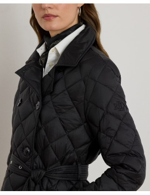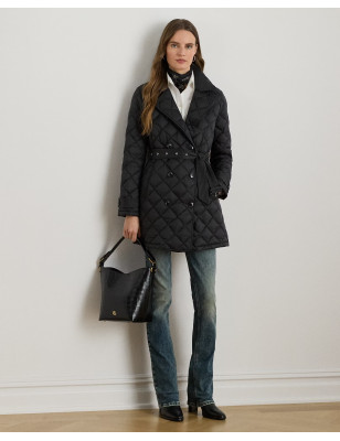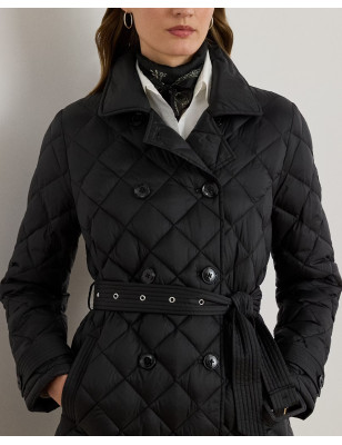 Lauren Ralph Lauren reinterpreta l'iconico trench con un tessuto isolante trapuntato a rombi. Una cintura nello stesso tessuto esalta il punto vita, mentre i bottoni effetto corno con incisione "Lauren Ralph Lauren" conferiscono al modello un tocco esclusivo.Taglio dritto. Lunghezza fino alla parte inferiore dei fianchi. La taglia S ha una lunghezza di 81,5 cm, busto di 104 cm e maniche di 82,5 cm. Le lunghezze del corpo e della manica sono misurate a partire dal centro della nuca. Collo ampio. Silhouette a doppio petto. Esclusivi bottoni con logo "Lauren Ralph Lauren". Maniche lunghe con listini con bottone sui polsi. Due tasche anteriori a filetto in vita. Logo “LRL” ricamato sulla parte superiore della manica sinistra. Passanti per cintura. Cintura nello stesso tessuto rimovibile con fibbia inclusa. Interamente foderato e leggermente imbottito. Questo prodotto è realizzato con nylon riciclato. Esterno e fodera: 100% nylon (riciclato). Imbottitura: 100% poliestere. Lavabile in lavatrice.