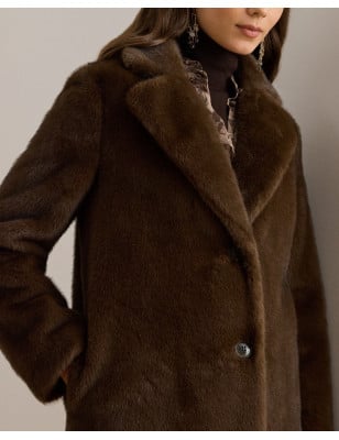 Must have del guardaroba invernale, questo caldo cappotto con revers dentellati unisce una raffinata silhouette a due bottoni a una morbida pelliccia ecologica. Bottoni effetto corno con incisione "Lauren Ralph Lauren" completano il look. Taglio dritto. Lunghezza fino a metà polpaccio. La taglia S ha una lunghezza di 116,8 cm, busto di 99,1 cm e maniche di 82,6 cm. Le lunghezze del corpo e della manica sono misurate a partire dal centro della nuca. Revers dentellati. Silhouette a due bottoni. Bottoni effetto corno con incisione "Lauren Ralph Lauren". Maniche lunghe. Due tasche a fessura in vita sul davanti. Interamente foderato. Esterno e fodera: 100% poliestere. Lavare a secco.