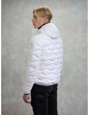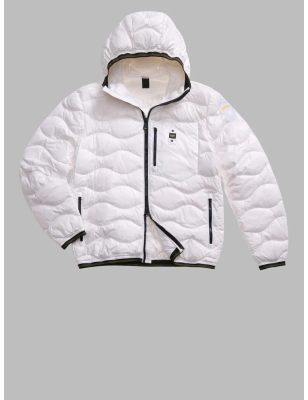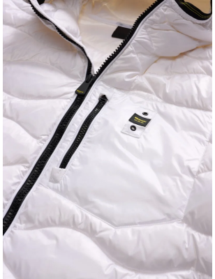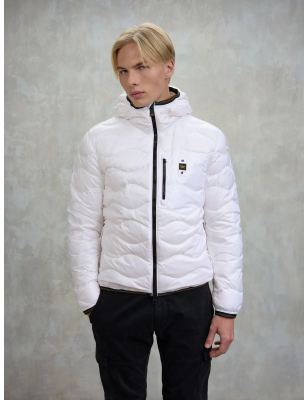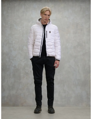Piumino trapuntato ad onde orizzontali. Taschina applicata sul petto a sinistra per donare al capo iconico Blauer un tocco più funzionale. Imbottitura naturale in piuma, calda e non ingombrante; dedicato a chi vuole essere sempre alla moda in ogni occasione. • Cappuccio fisso • Foderato in tono • Imbottito piuma 90/10 gr.165 • Chiusura con zip • Copri cursore sul collo • Tasche con zip • Taschino con zip sul petto • Elastico rigato sul profilo del cappuccio, polsino e fondo. • Tasche interne doppie: aperte e con velcro • Patch e passante con logo.