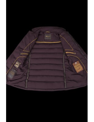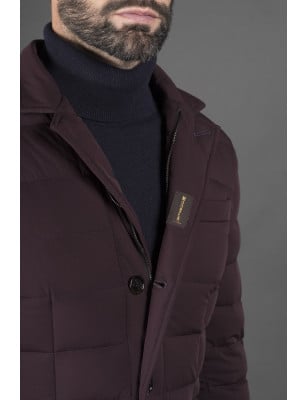 Giacca dal taglio classico della linea Acqua (1 ombellino). Imbottita in piumino d’oca ad iniezione diretta, trapuntata a boudin. Realizzata in tessuto bielastico resinato idrorepellente, molto compatto e resistente alla trazione. Bavero con revers a dente Doppia chiusura frontale con zip in metallo a doppio cursore e bottoni in corno a vista Lunetta del collo in pelle Rifiniture interne a contrasto in flanella di lana vergine mista cashmere Taschino a filetto sul petto Tasche a filetto con pattina sui fianchi Rifinito internamente con fettucce logate e piping color oro Comode tasche interne porta valori