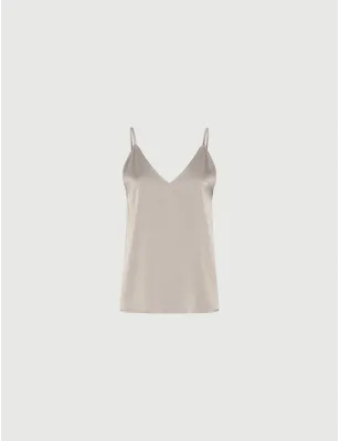 Quando l'occasione chiama, il top in satin risponde: e lo fa con tutta la raffinatezza di una linea femminile, delle spalline sottili e dello scollo sagomato sia sul décolleté che sulla schiena. Tessuto principale contenente materie prime derivanti dalla cellulosa del legno, fibra ricavata nel rispetto del patrimonio forestale Top in satin triacetato Fit femminile Scollo a V davanti e dietro Spalline sottili