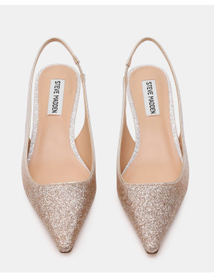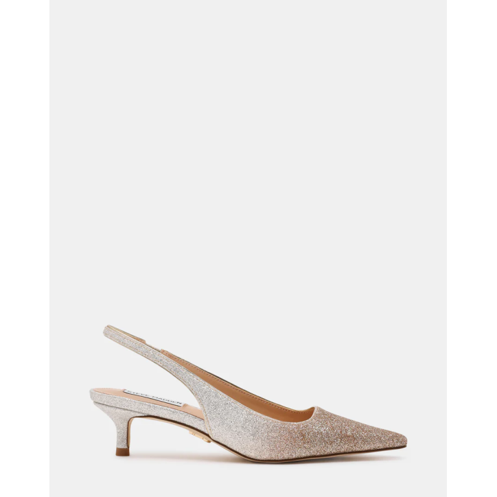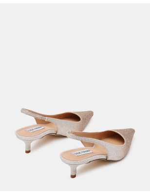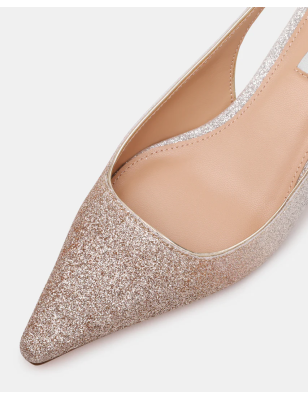 La décolleté KARI presenta una punta affusolata, un basso tacco a rocchetto e un sottile cinturino slingback per una silhouette elegante e raffinata. Décolleté slingback con punta affusolata e tacco a rocchetto Modello slip-on con cinturino slingback Altezza tacco: 4,5 cm Tomaia sintetica in glitter Fodera sintetica Sottopiede sintetico Suola sintetica.