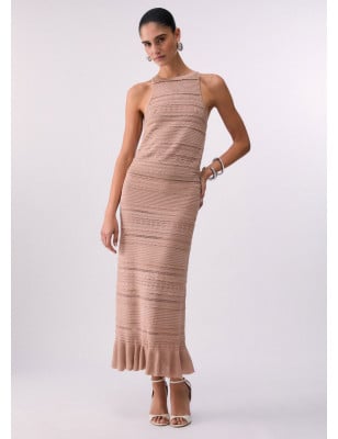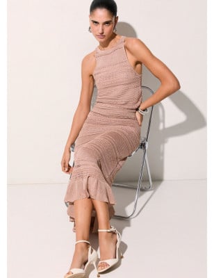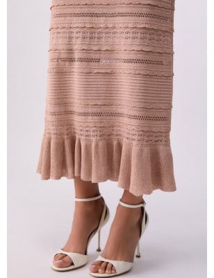 Questa gonna longuette in maglia gioca con un delicato vedo-non-vedo e interventi in lurex, che aggiungono una nota glow senza esagerare. Perfetta in coordinato con cardigan e top. Gonna lunga in maglia traforata Lavorazione punzonata Interventi in lurex Cintone elastico in vita Volant sul fondo. Composizione: Tessuto principale: 73% Viscosa, 18% Poliammide, 9% Poliestere metallizzato LAVAGGIO: Lavare a mano | Non trattare con cloro | Non Lavare a secco | Lavare a rovescio | Non strofinare durante il lavaggio | Non lasciare a mollo i capi nell'acqua | ASCIUGATURA: Non usare Asciugatrice | Asciugare in piano | STIRAGGIO: Non stirare | Stirare a temperatura massima 110 °C | Non stirare le decorazioni | Stirare interponendo un panno.