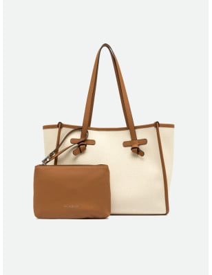 La shopping Marcella by Gianni Chiarini Firenze presenta una silhouette minimale e elegante, realizzata in tessuto canvas. Dotata di manici in pelle e chiusura magnetica, è perfetta per l'uso quotidiano. I profili in pelle aggiungono un tocco di classe, mentre la fodera interna e la pochette coordinata ne aumentano la versatilità, rendendola ideale per completare anche i look più semplici. Dimensioni: 33x25x13 cm.