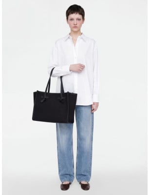 La shopping Marcella by Gianni Chiarini Firenze presenta una silhouette minimale e elegante, realizzata in tessuto canvas. Dotata di manici in pelle e chiusura magnetica, è perfetta per l'uso quotidiano. I profili in pelle aggiungono un tocco di classe, mentre la fodera interna e la pochette coordinata ne aumentano la versatilità, rendendola ideale per completare anche i look più semplici. Dimensioni: 33x25x13 cm.