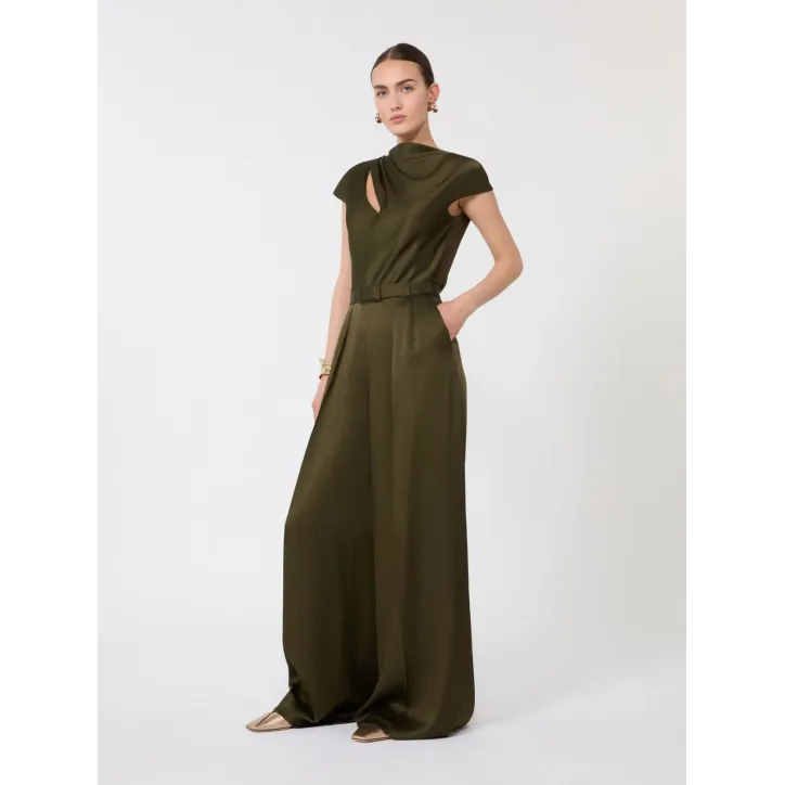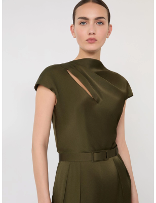 Abito lungo tagliato in sbieco con dettaglio gioiello sullo scollo. Abito in satin leggero. Linea fluida. Scollo all'americana con laccetti sottili. Chiusura con lampo invisibile sul fianco. Dettaglio in metallo galvanizzato color oro. Foderato. Tessuto 77% triacetato, 23% poliestere; fodera 100% poliestere. In lavatrice max 30 gradi ridotta azione meccanica; non candeggiare; non asciugare in tamburo; asciugare appeso in ombra; ferro tiepido max 120 gradi c; lavare a secco delicato con percloroetilene.; inserire il capo in un sacco di rete.; rovesciare il capo prima del lavaggio.