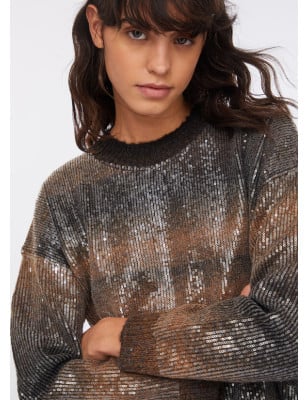 Maglia con filati in misto lana. Girocollo. Paillettes ricamate all-over. Composizione: Tessuto principale: 64% Poliestere, 28% Acrilica, 8% Lana| Ricami e decorazioni: 100% Poliestere LAVAGGIO: Lavare a mano | Non trattare con cloro | Non Lavare a secco | Lavare a rovescio | Non strofinare durante il lavaggio ASCIUGATURA: Non usare Asciugatrice | Asciugare in piano | Non torcere o strizzare STIRAGGIO: Non stirare | Stirare a temperatura massima 110 °C | Non stirare le decorazioni | Stirare a rovescio.