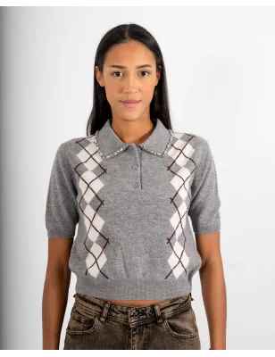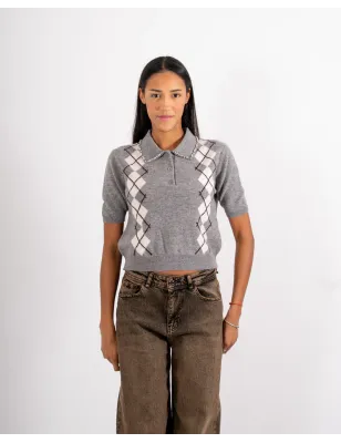 Questa polo a mezza manica in lana fine è un capo versatile e raffinato, perfetto per aggiungere un tocco sofisticato al guardaroba quotidiano. Il motivo a losanghe e i dettagli sul bordo del colletto donano un look curato e distintivo, mentre la vestibilità slim fit valorizza la silhouette con eleganza.