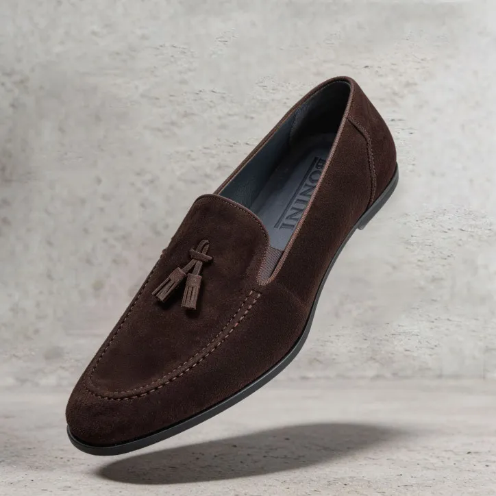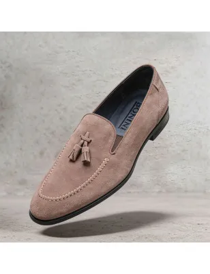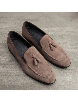 Mocassini in suede con nappa, disponibili in diversi colori. Presenta la tipica cucitura a baffo, ton sur ton, che corre su tutta la punta elegante e affussolata. La calzata è regolare e confortevole. Un must da indossare sotto gli abiti per cerimonie formali o per momenti di svago sotto un jeans o un pantalone.