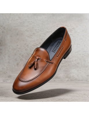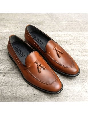 Mocassini in vera pelle con nappa, resa speciale dalle cuciture in rilievo sulla parte superiore della tomaia, che ne evidenziano la lavorazione artigianale. Disponibili in diversi colori. Realizzata in pelle di vitello marrone tinta a mano, presenta la tipica cucitura ton sur ton, che corre su tutta la punta elegante e affussolata, in un chiaro richiamo old vintage. La calzata è regolare e confortevole. Un must da indossare sotto gli abiti per cerimonie formali o per occassioni speciali sotto un pantalone chinos.
