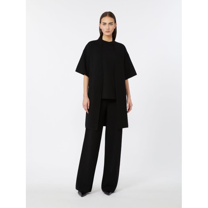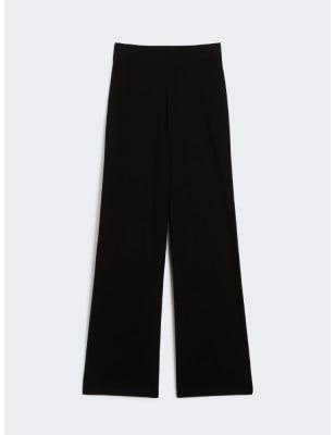 Pantalone lungo dalla linea dritta leggermente svasata al fondo. Pantalone in filato di viscosa stretch a punto tessuto Vestibilità morbida Vita elasticizzata. Pantalone in maglia Filato in maglia: 72% Viscosa, 28% Poliestere