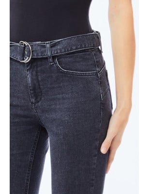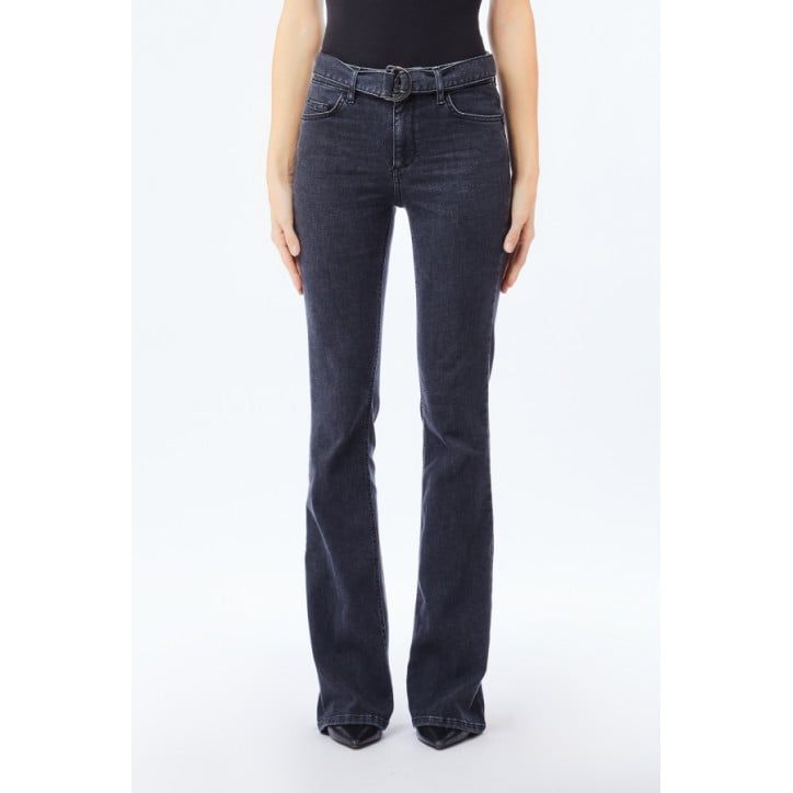 Jeans in denim di cotone stretch. Tagli bottom up che ridefiniscono le forme con eleganza, donando armonia e sostegno senza rinunciare al comfort. Vita alta. Gamba flare. Modello cinque tasche. Cintura sur ton con fibbia d-ring in abbinamento. Logo in metallo sul retro. Chiusura con bottone e zip coperta. Composizione: Tessuto principale: 96% Cotone, 4% Elastan| Fodera principale: 65% Poliestere, 35% Cotone LAVAGGIO: Lavare delicatamente max 30°C | Non trattare con cloro | Non Lavare a secco | Lavare a rovescio | Non strofinare durante il lavaggio | Lavare con detersivo liquido | Rimuovere la cintura prima del Lavaggio ASCIUGATURA: Non usare Asciugatrice STIRAGGIO: Non stirare | Stirare a temperatura massima 110 °C | Non stirare le decorazioni.